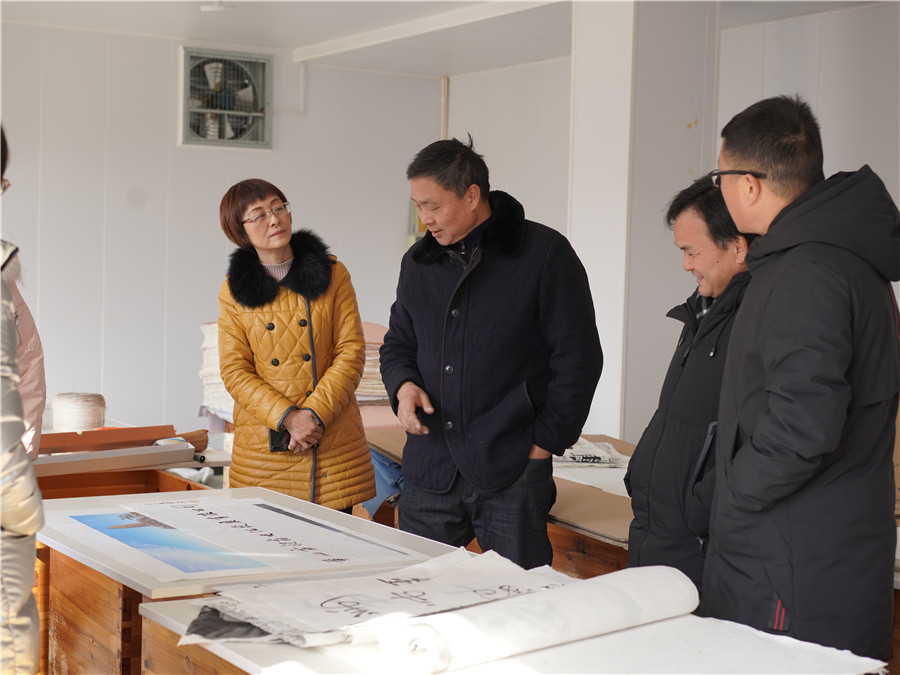 1月11日由市文旅局副局長(zhǎng)王迎春帶隊(duì)的,黃山市非物質(zhì)文化遺產(chǎn)傳習(xí)基地驗(yàn)收組到我司黃山市凝霜文化發(fā)展有限公司進(jìn)行調(diào)研工作。