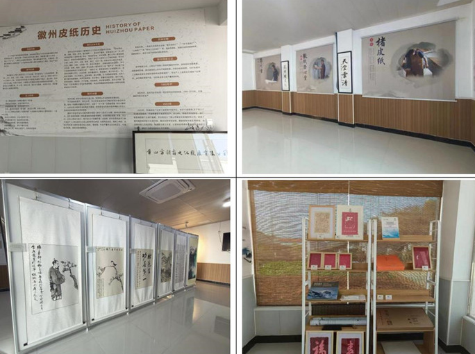 展示館向參觀者介紹徽州皮紙興衰的歷史,全套的工藝流程,黃山市凝霜文化發(fā)展有限公司從江蘇蘇州搬遷到休寧的原因和發(fā)展過(guò)程、公司近年來(lái)獲得的榮譽(yù)和藝術(shù)家們用公司生產(chǎn)的手工紙創(chuàng)作的作品、視頻播放公司制作產(chǎn)品的全過(guò)程,讓參觀者輕松愉快的了解徽州皮紙的前古今生。